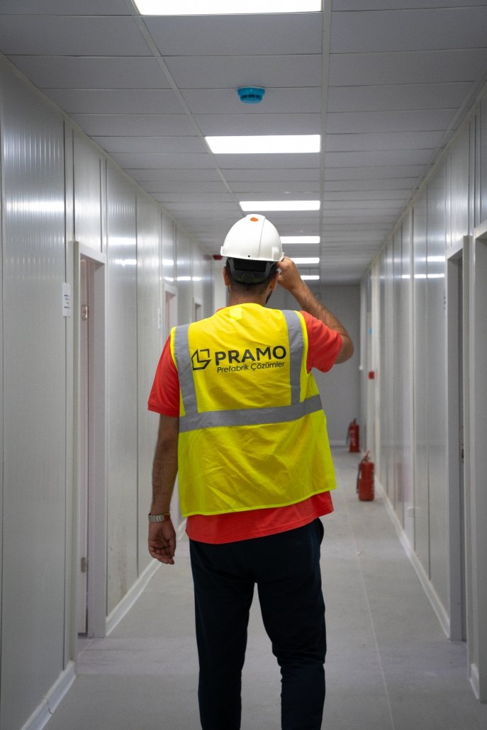 This three-storey facility, produced with earthquake-resistant light-steel construction, was fully completed in just 45 days, making the Ankara Courthouse Construction Site Office Building Project a milestone in Pramo Prefabric’s portfolio.