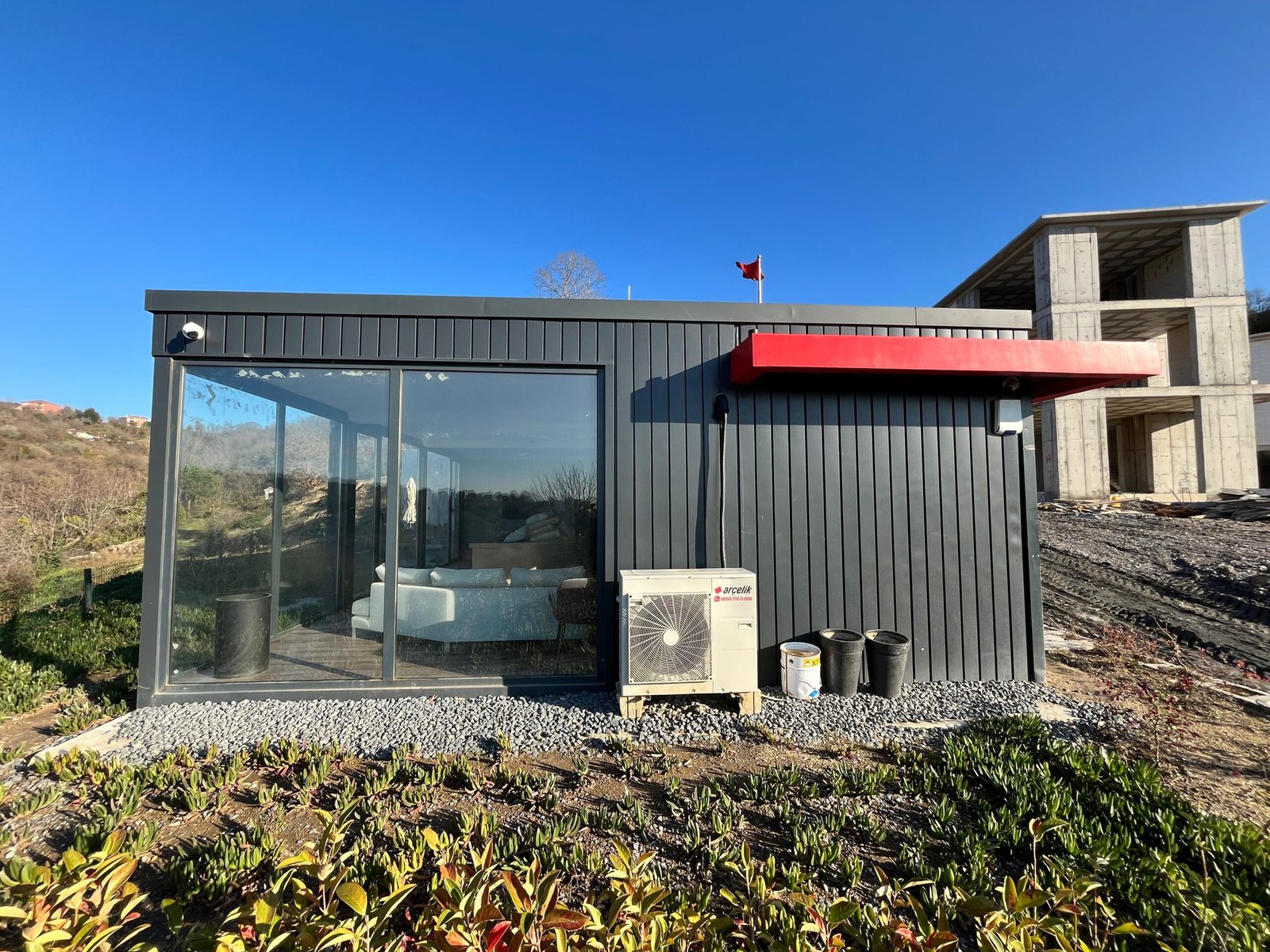 The structure, built with light steel construction, stands out with its earthquake resistance and long life, as well as its aesthetic and functional design. Thanks to its advanced insulation features, energy saving and interior comfort are provided throughout all four seasons. Designed in VIP standards, the office offers modern and comfortable areas in order to best support project management and operation processes. This project is a successful work reflecting Pramo Prefabrik’s high quality approach and customer-oriented service.