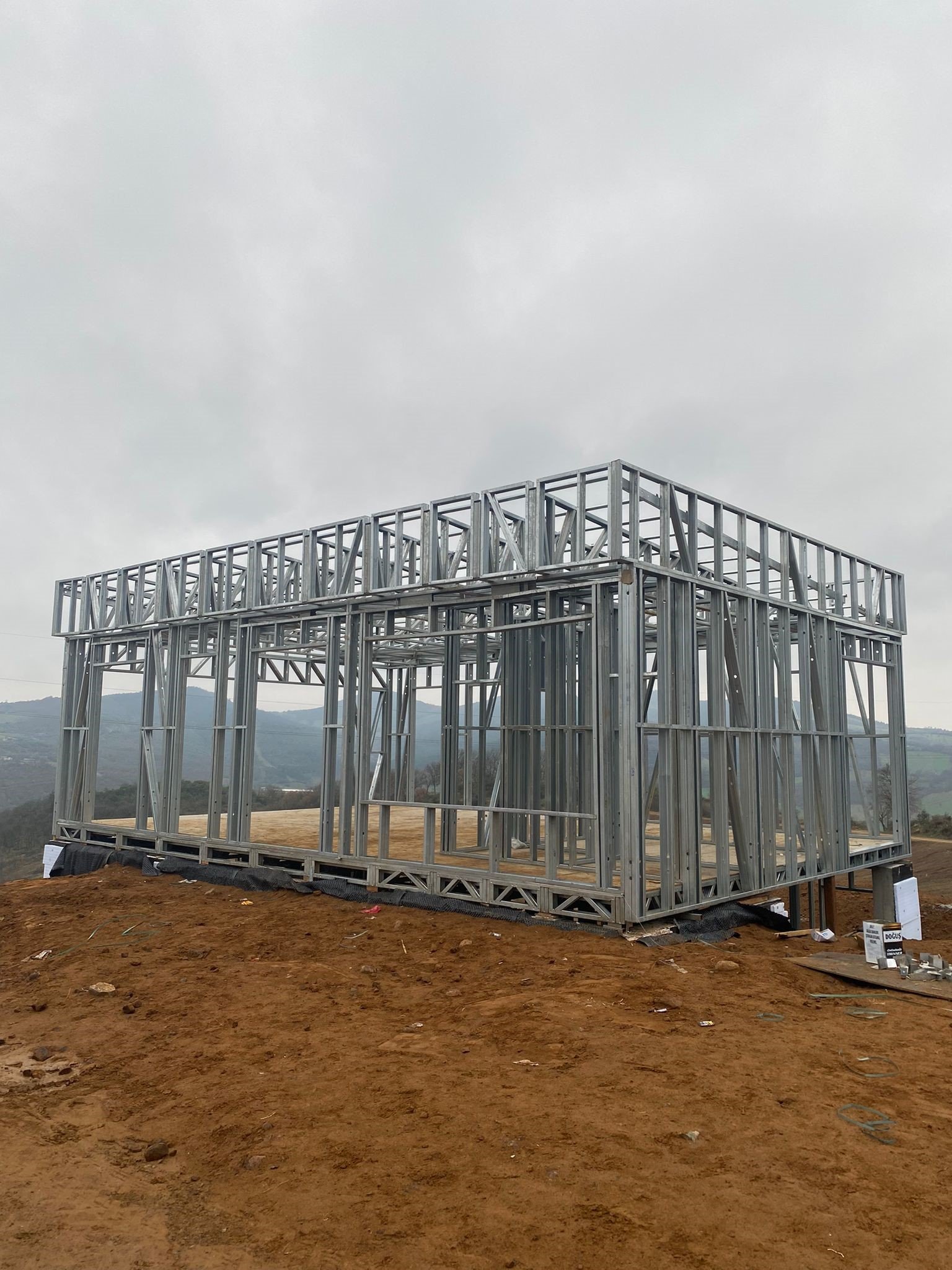 The double-storey light steel housing project that we, as Pramo Prefabrik, have implemented in Çanakkale, draws attention with its modern design and durability. Constructed with a light steel structure system, this house stands out with its environmentally friendly structure, energy efficiency and fast installation advantages.