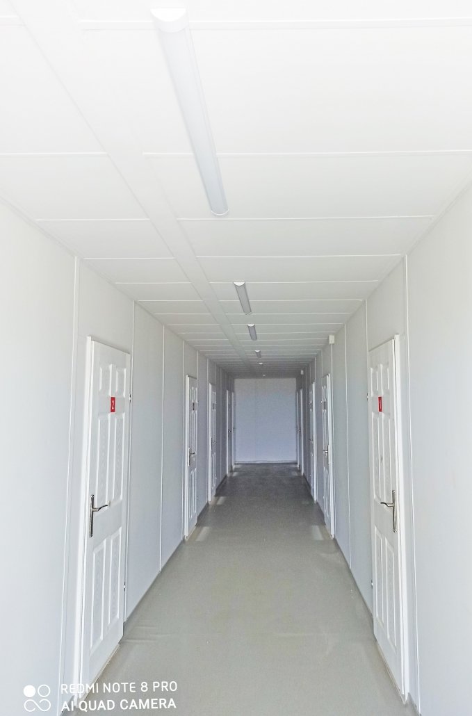 A key highlight of the project is the 36-person, 3-storey worker dormitory. Built by dismantling 18 existing containers and combining them with 18 newly manufactured units, this structure offers a modern and comfortable living environment for workers.