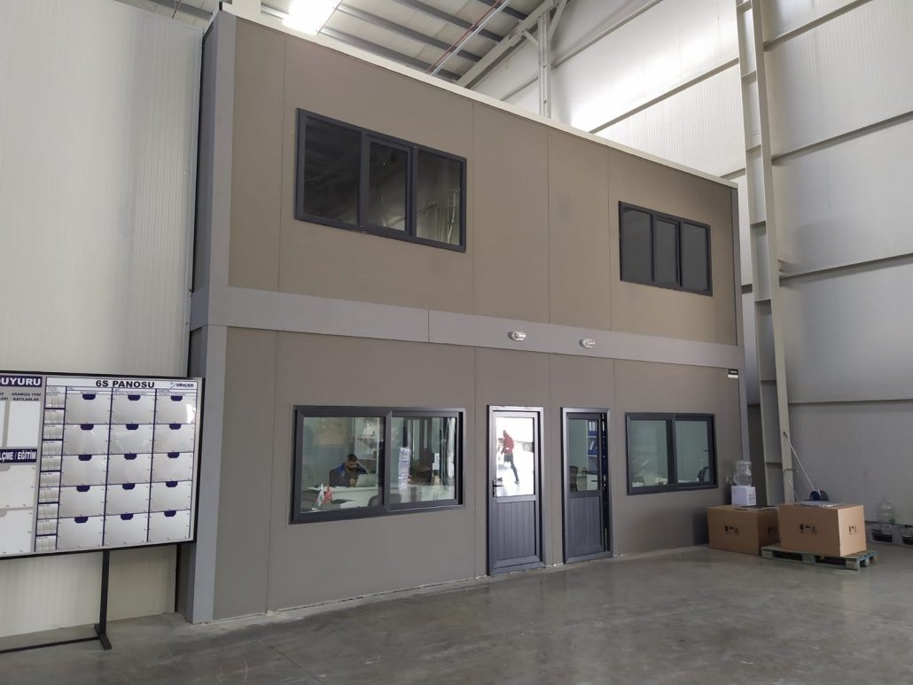 Thanks to Pramo Prefabrik’s experienced team, the production and assembly processes were completed quickly and the project was ready for use in a short time. The office, which was built using light steel construction, stands out with its durability and earthquake safety. Its ergonomic and functional interior arrangements are designed to increase the comfort of the employees. Sancaktepe Factory Office Project is a successful project that reflects Pramo Prefabrik’s customer-oriented and quality service approach.