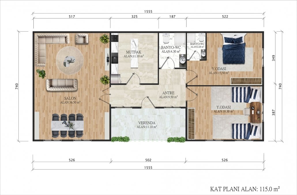 115 m2 SINGLE STOREY PREFABRICATED HOUSING
