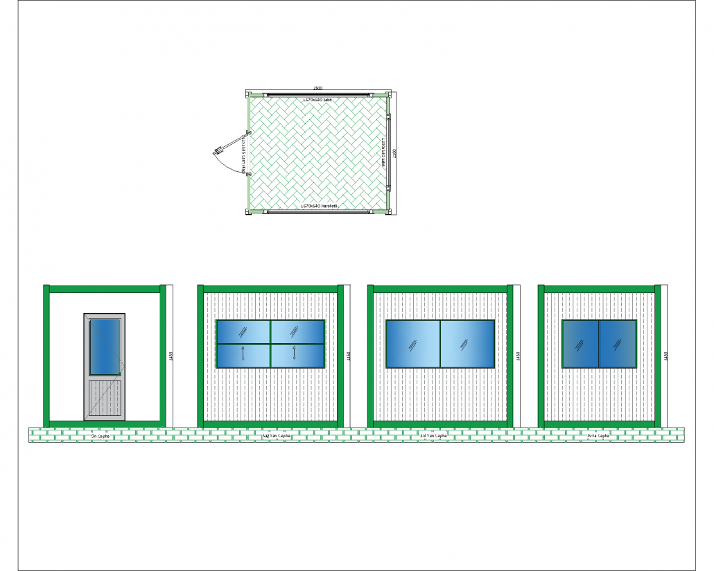 This panel cabin is ideal for use as an office, security point or temporary work area with its spacious interior and modern design. This structure, which is 3000 mm x 2300 mm in size, offers its users a spacious work environment. The glass door and large window options on the front facade allow plenty of natural light to enter the interior, which both saves energy and helps to keep the environment bright and airy.