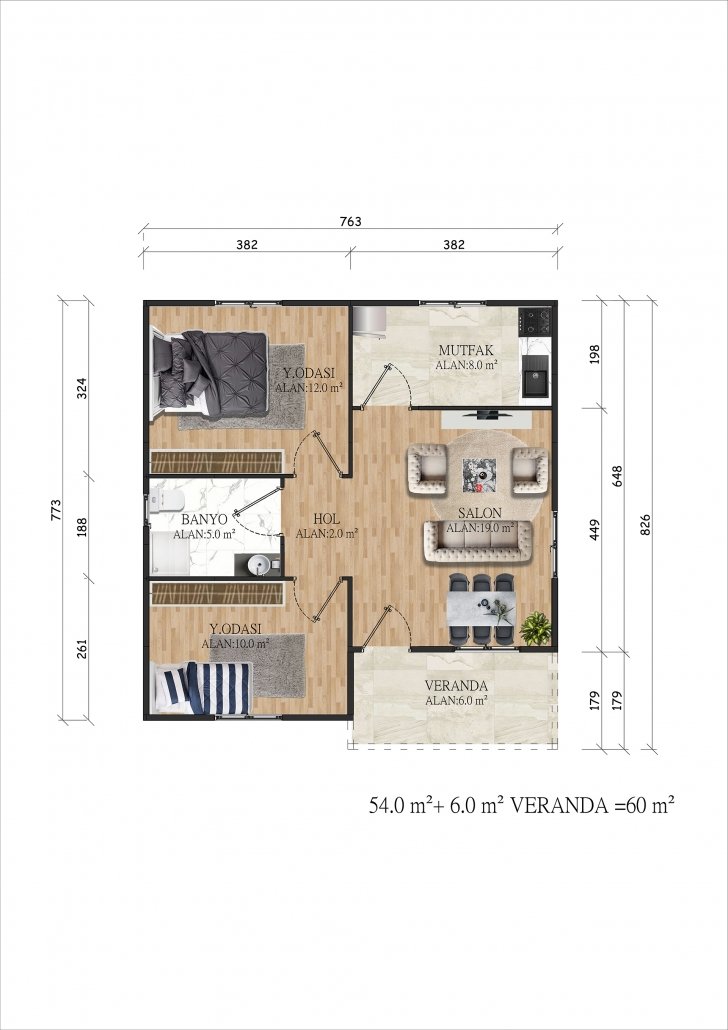 60 m2 SINGLE STOREY PREFABRICATED HOUSING