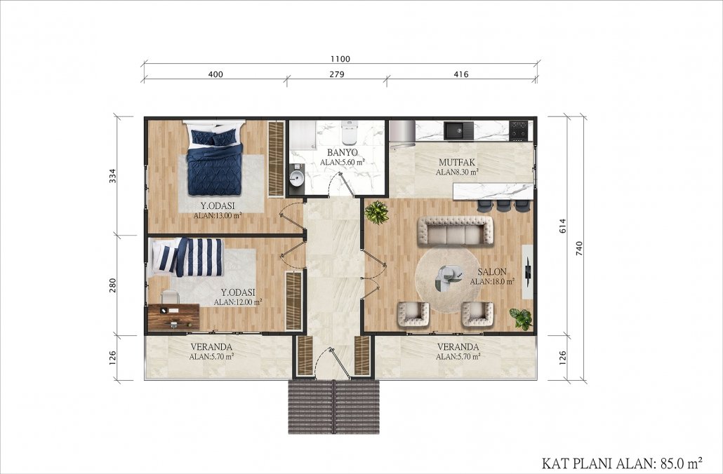 85 m2 SINGLE STOREY PREFABRICATED HOUSING