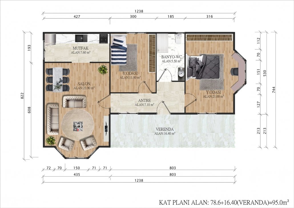 95 m2 SINGLE STOREY PREFABRICATED HOUSING